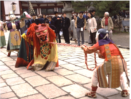 ・『日本書紀』によれば、推古天皇二十年( 612 )、百済からわが国に帰化した味摩之(みまじ)が「呉」(中国江南地方)で学んだ「伎楽」を桜井の地に伝えた。