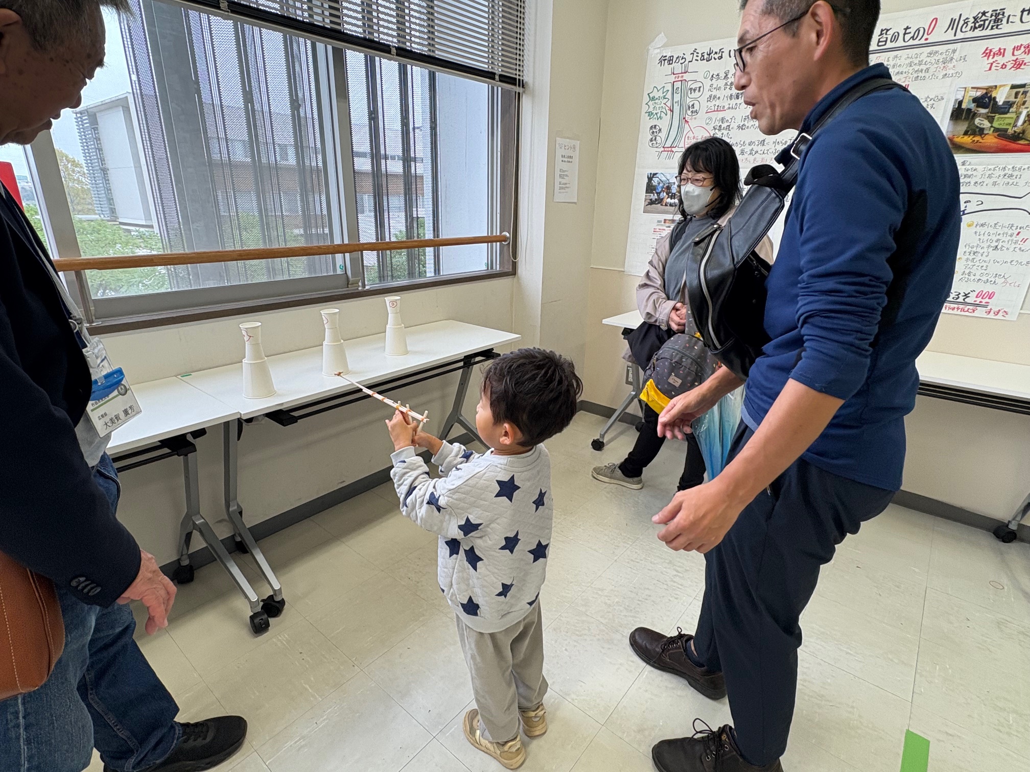 輪ゴム鉄砲づくりもにぎわいました。輪ゴム鉄砲を大事に抱えて、楽しかったよと、お礼をいただきました。