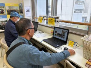 市民大学1期生から14期生までのグループ研究発表がライブラリーとなりパソコン画面で閲覧ができることとなりました。また、プロジェクタースクリーンに映して、大画面でグループ研究発表を楽しむことができました。
