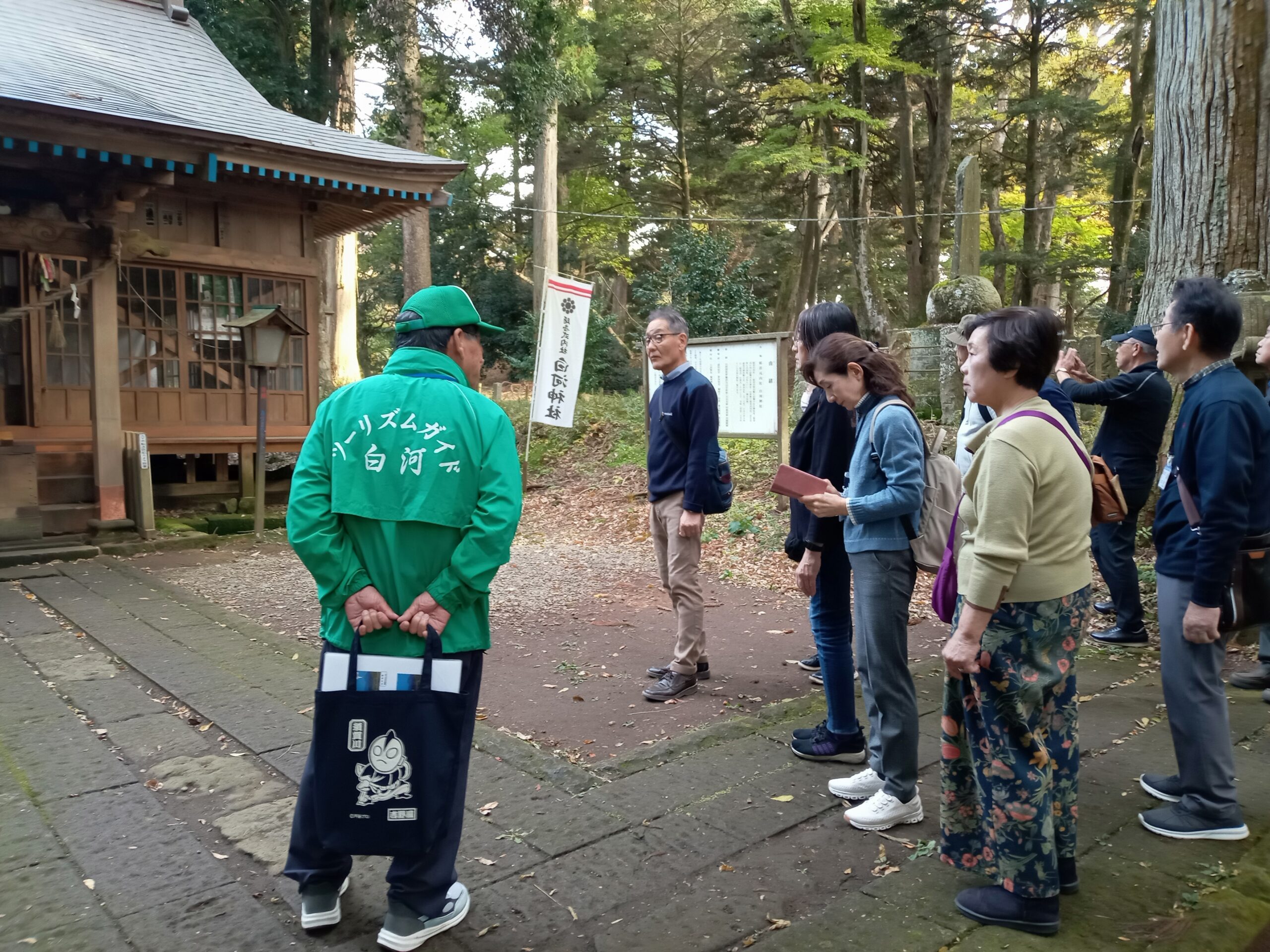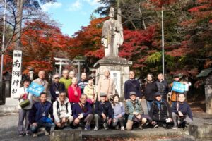 次に定信によって建造された南湖公園に向かう。<武士も民も共に>の思い「市民共楽」の理念は定信を敬愛した渋沢栄一が南湖神社の建設援助という形で憩いの場を作り現在の縁結びの神様になってる。本日は紅葉を愛で、春には、那須連山の残雪と湖畔に咲く桜との景観が素晴らしいとのこと。