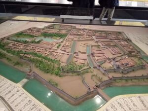 小峰城歴史館で、スクリーンや展示物から歴史を感じ取り、天守そびえる小峰城を現地ガイドの案内で散策。紅葉の美しい中にそびえる、白亜の三重櫓や前御門、現在NHKべらぼうにもよく出る「松平定信」。定信のおかげにより、現代に蘇った建築物だ。素晴らしい長く高く巡らされた石垣に感動した。