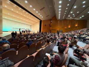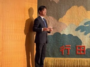 今村武蔵理事長の発声を追って会場の全員が一丸となって参加しました。