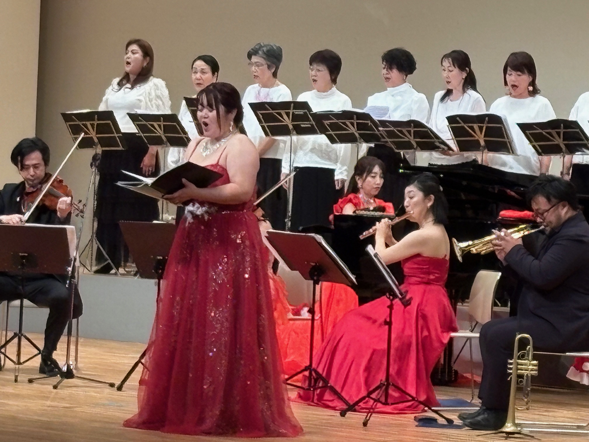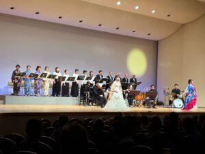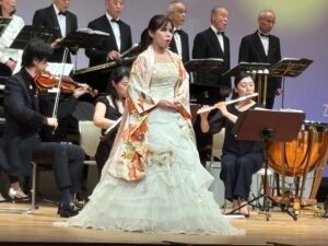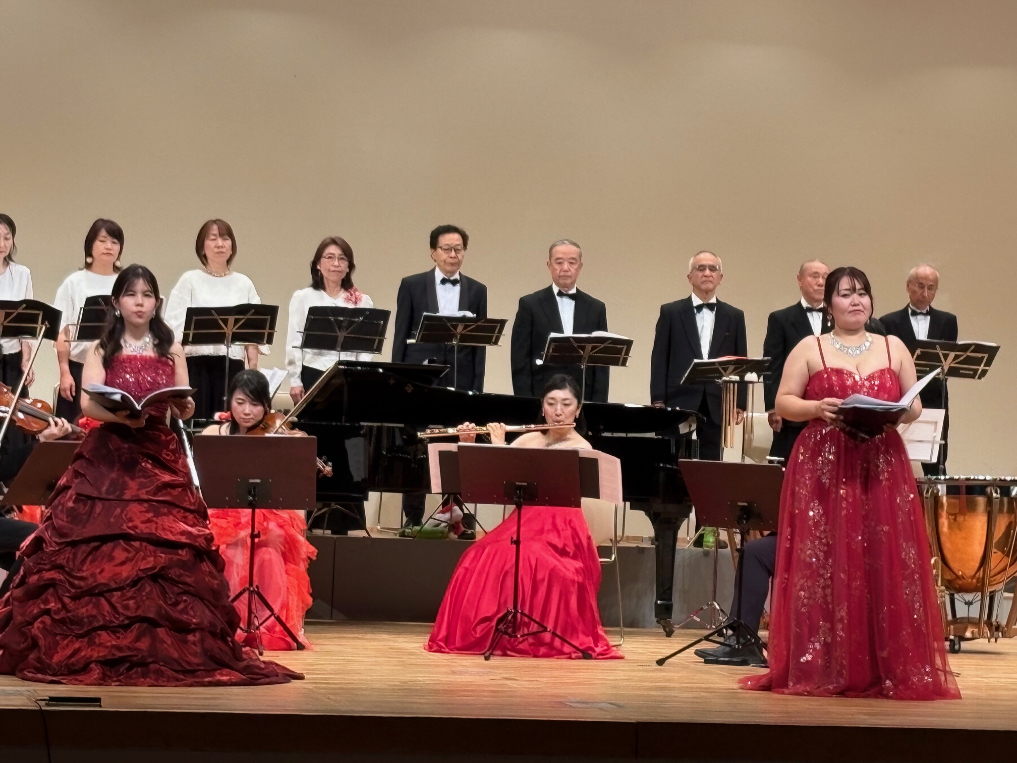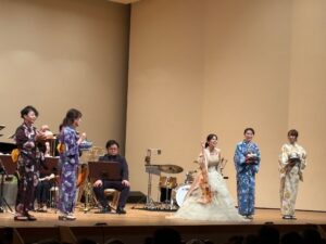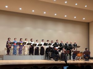 出演するコーラス隊も着物姿で登場。ソプラノのお二人も美しい打掛を羽織って登場。