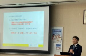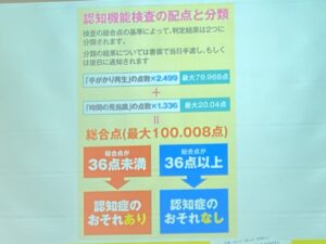 75歳以上では認知機能検査が行われるが、これは、自己の認知機能の状況を理解して安全運転を継続できるよう支援することが目的であり、暮らしの中で認知機能低下を予防する活動が必要であるということでした。また、信号無視・速度超過などの違反行為をしないように注意することも大変重要であると学びました。