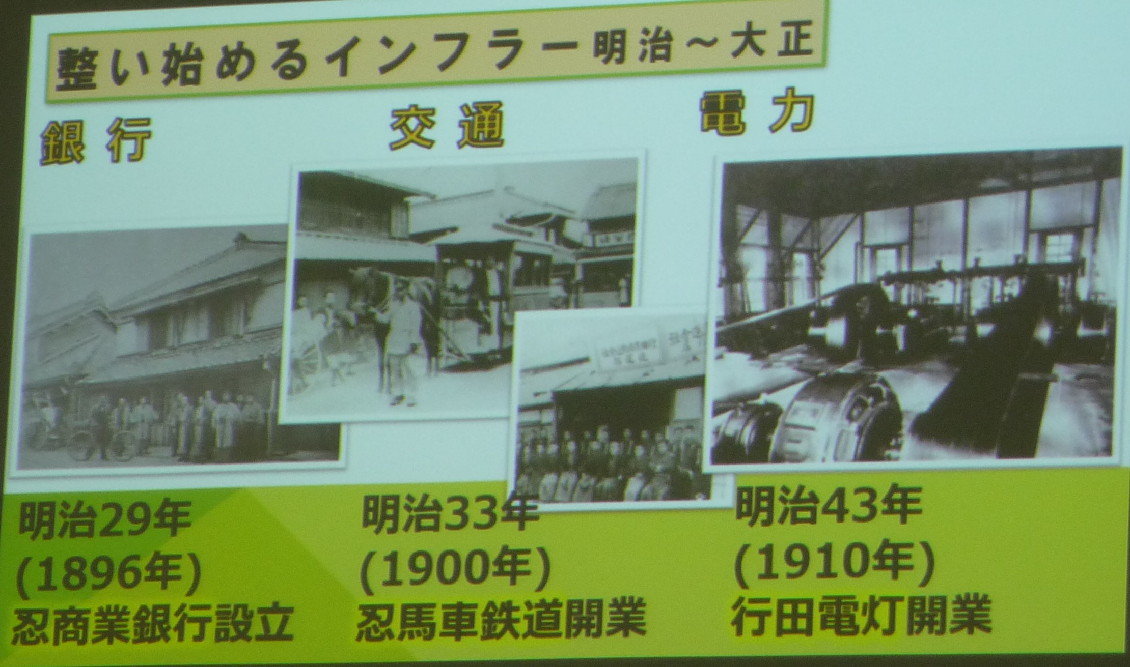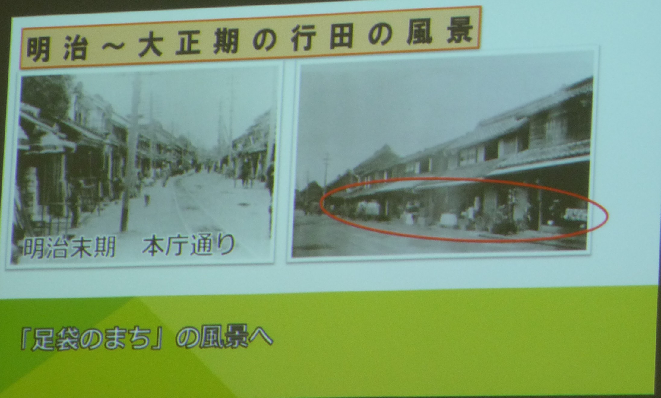 明治~大正にかけて行田では足袋屋が栄え、それを中心に銀行・信用組合 馬車鉄道をはじめ、明治43年には夜遅くまで足袋工場が稼働できるようにと電気を通すなど、当時としては進歩的な町だった。
