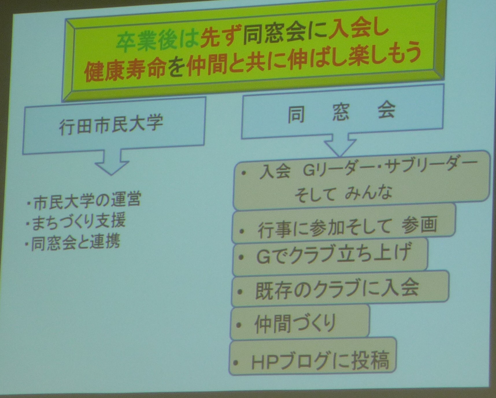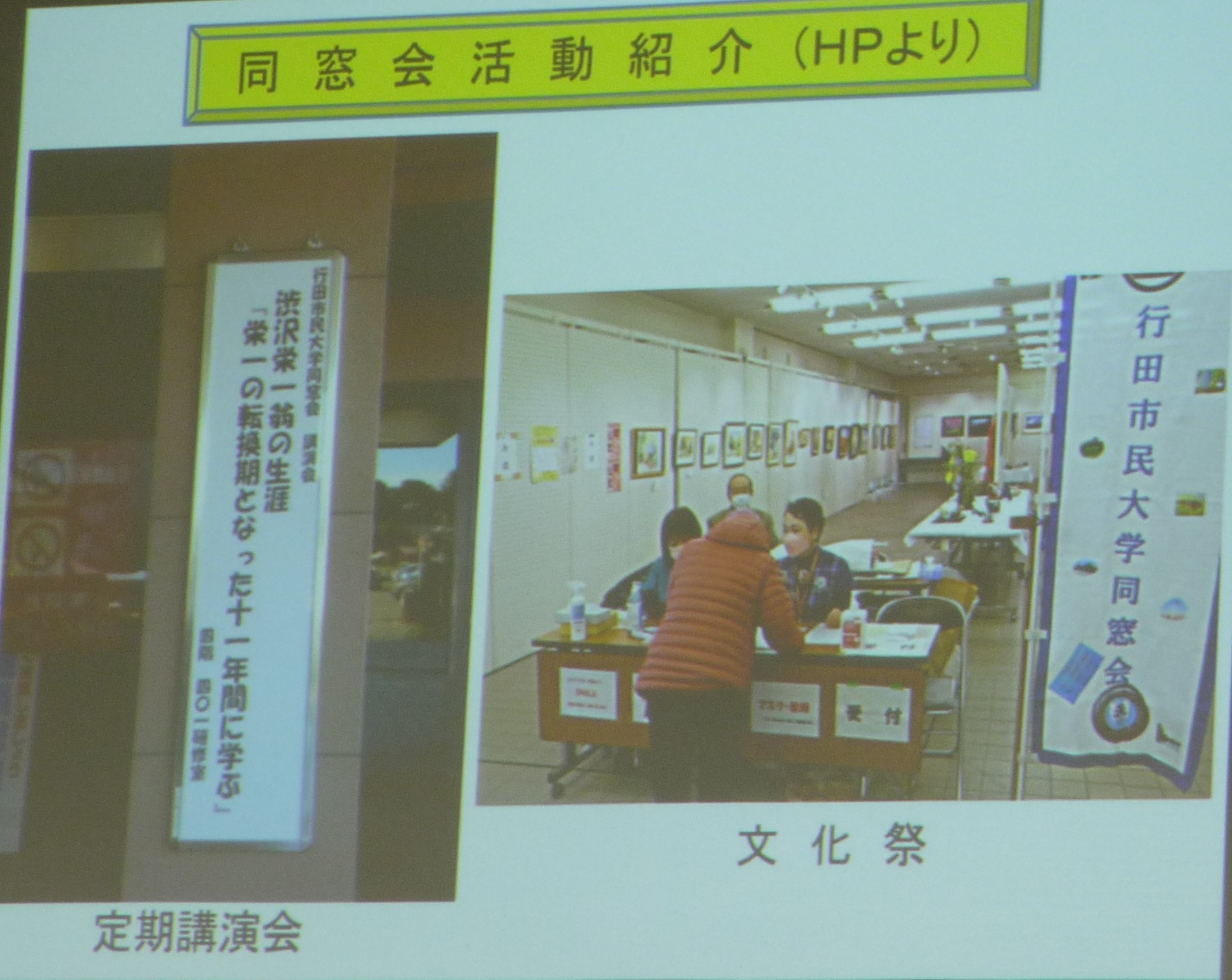 次に10分間休憩をはさんで、同窓会会長である永島さんより、同窓会の説明がありました。