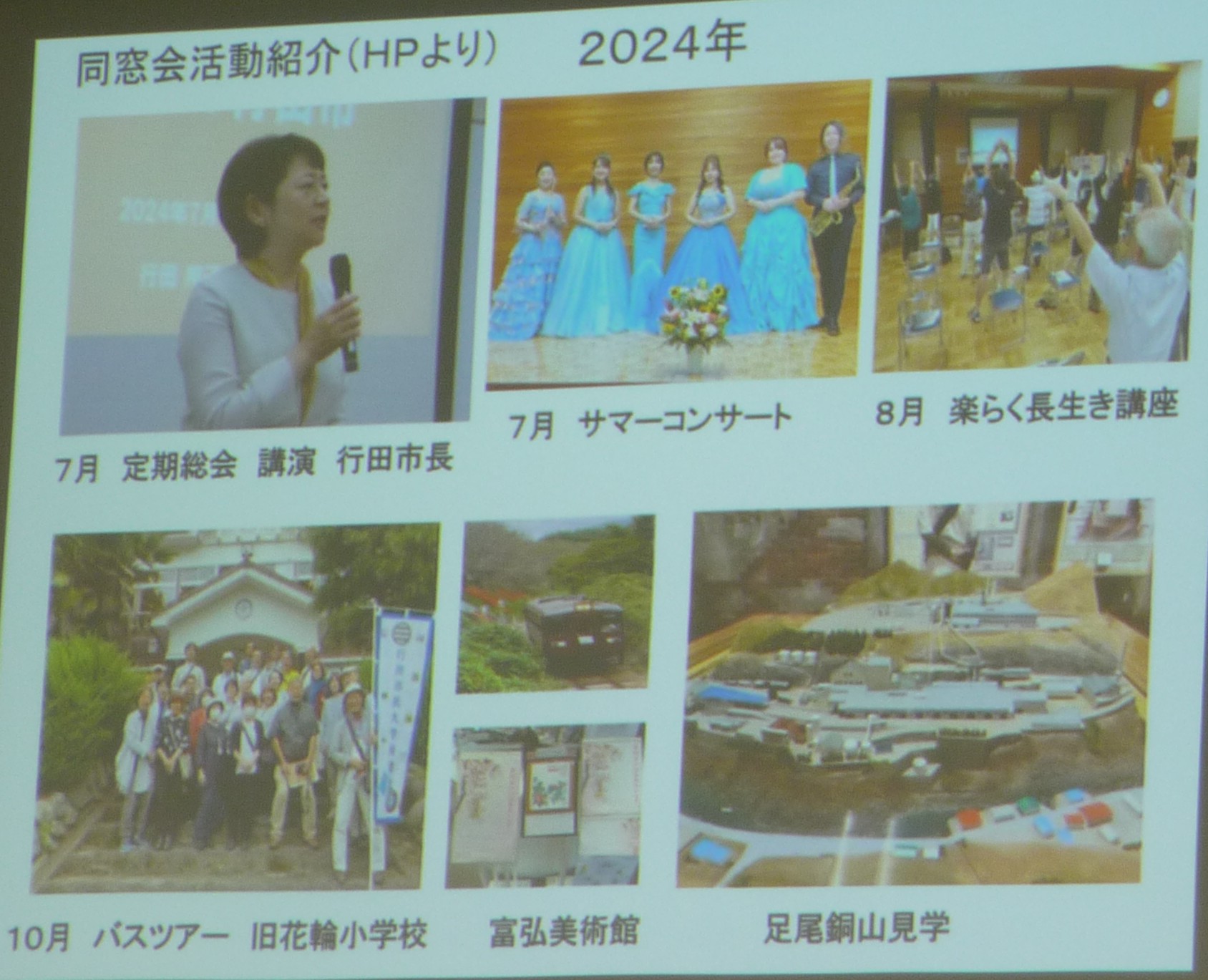 同窓会ではコロナ期に活動はかなり減ってしまったとのことですが、現在24のクラブ活動があり、さまざまな行事を行っています。