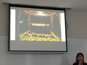1年第20回講座「アートでまちおこし」講師の小薗江美連(おそのえ びれん)さんが講義でおっしゃった「アートには正解がない。スピードを求めない。人生経験がにじみ、そのものが表現の深みになる。」という言葉が印象的でした。