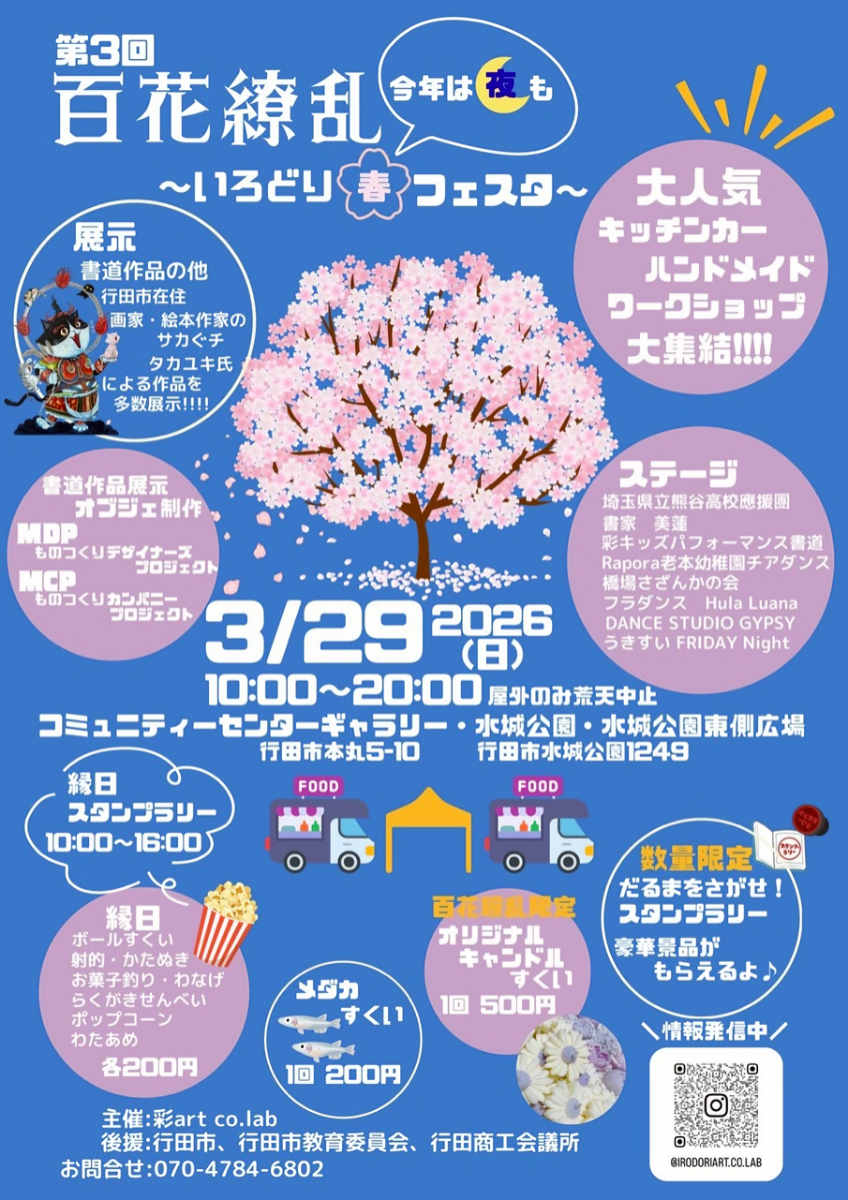 1年生第20回講座「アートでまちづくり」の講師の美蓮(びれん)さんが代表の「彩art co.lab(いろどり あーと かんぱにー らぼ)」が「百花繚乱」というイベントを行います。