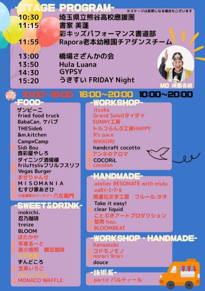 コミュニティセンターギャラリーには、書道、絵画作品の展示、外では、縁日、ステージ発表、キッチンカー、ワークショップなど盛りだくさんです!