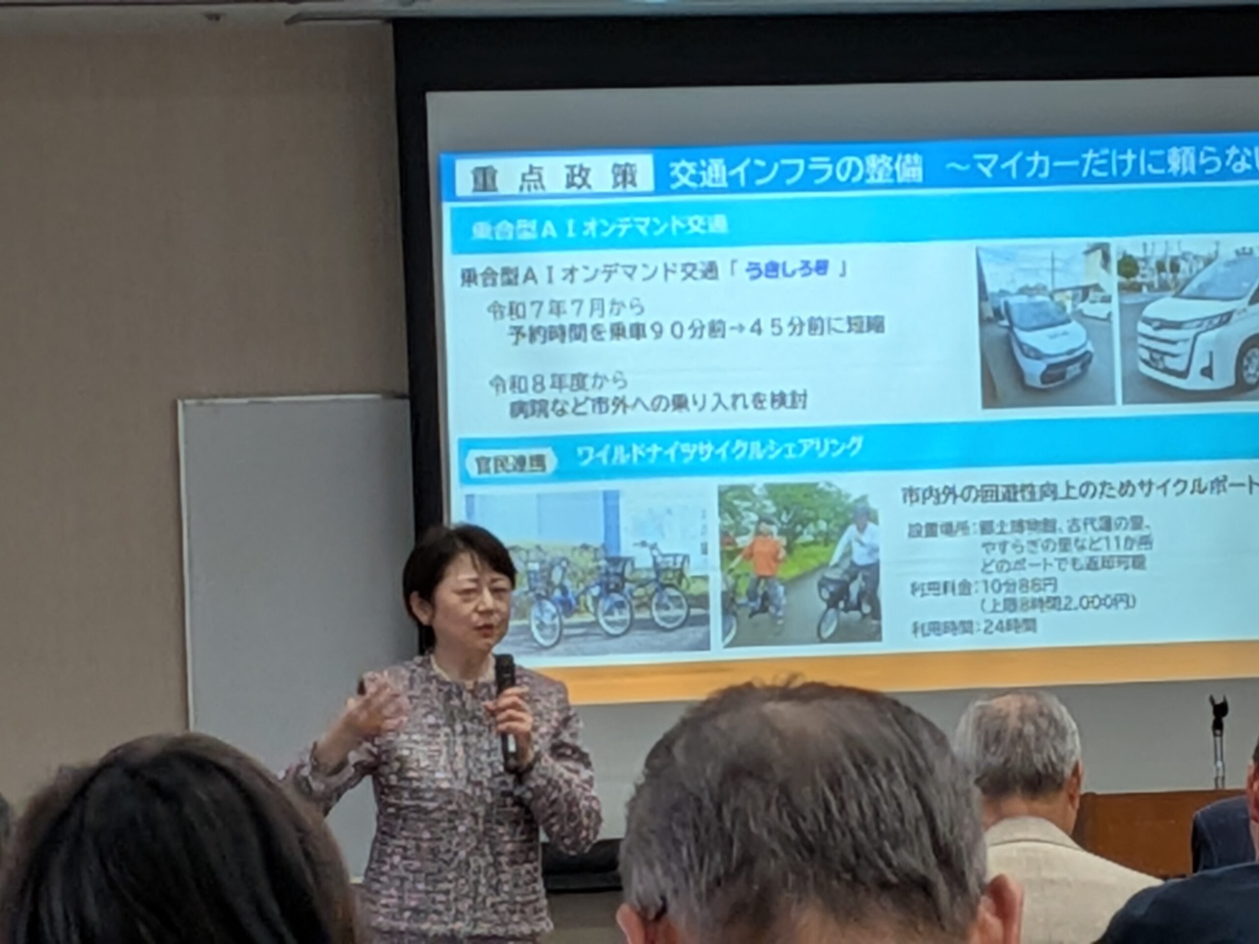 行田市民大学学長 行田邦子氏より1時間に渡り記念講話が行われた。【新しい行田へ ~みなさんといっしょに~】をテーマにこの3年に重点政策の種まきが出来た。これからは芽が出て刈り取り未来の市民との対話をするとの。講話であった。